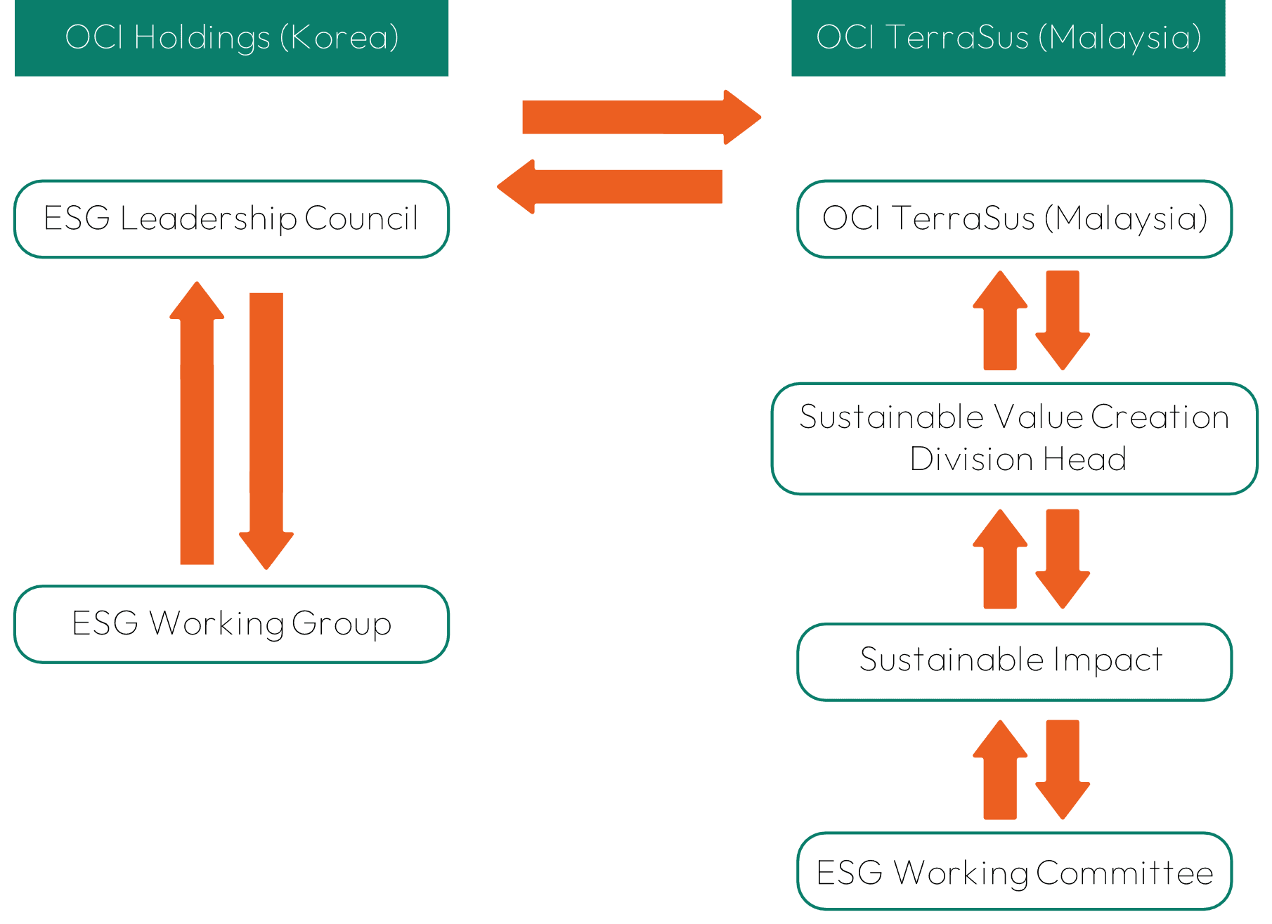 At OCI TerraSus, our sustainability governance structure is designed to ensure effective oversight and clear accountability at every level of the organisation. This structure reinforces our commitment to integrating sustainability principles into daily operations — aligning our business practices with our long-term vision for responsible growth and positive environmental and social impact.